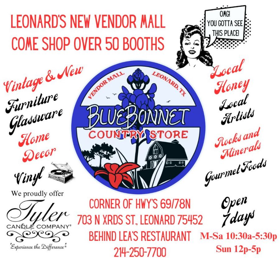 Don't miss... Soundhole Records Inside Bluebonnet Country Store! Old and new old stock vinyl, CD's, Cassettes, Posters, T-Shirts, Memorabilia.